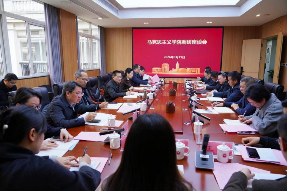 3月19日,结合树立和践行正确政绩观学习教育,校党委书记凌启淡、党委副书记陈晓红带领党政办公室、宣传部、教务处、发展规划处、社会科学处等单位负责人,深入马克思主义学院调研,实地参观了马克思主义理论学科群展览馆,并召开专题调研座谈会。马克思主义学院党政班子成员、高层次人才和青年教师代表参加调研座谈。