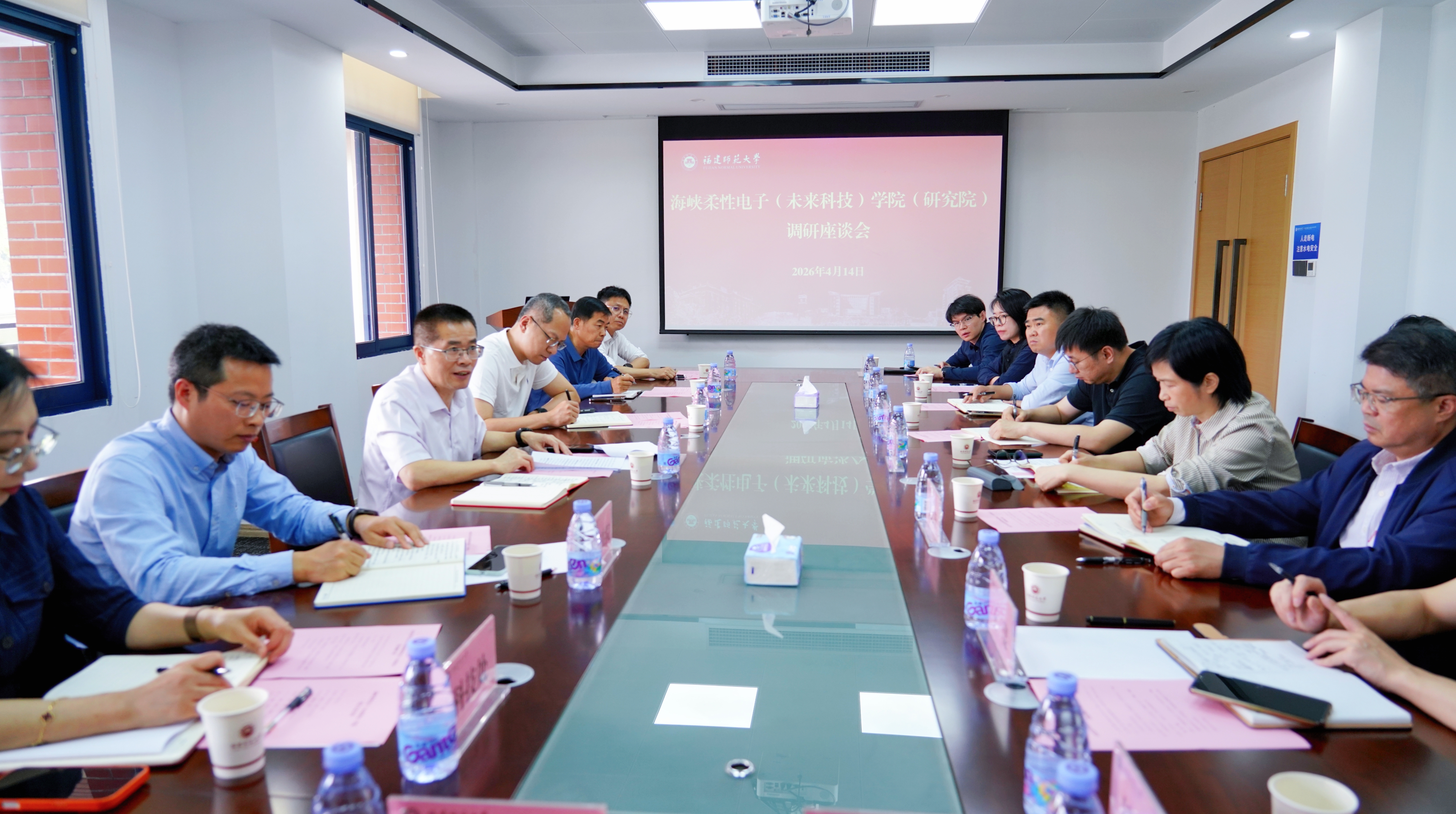4月14日,校党委书记凌启淡带领党政办公室、研究生院、发展规划处、科学技术处、产教融合发展中心负责人深入海峡柔性电子(未来科技)学院(研究院)调研,并与学院班子成员、高层次人才和青年教师代表等座谈。